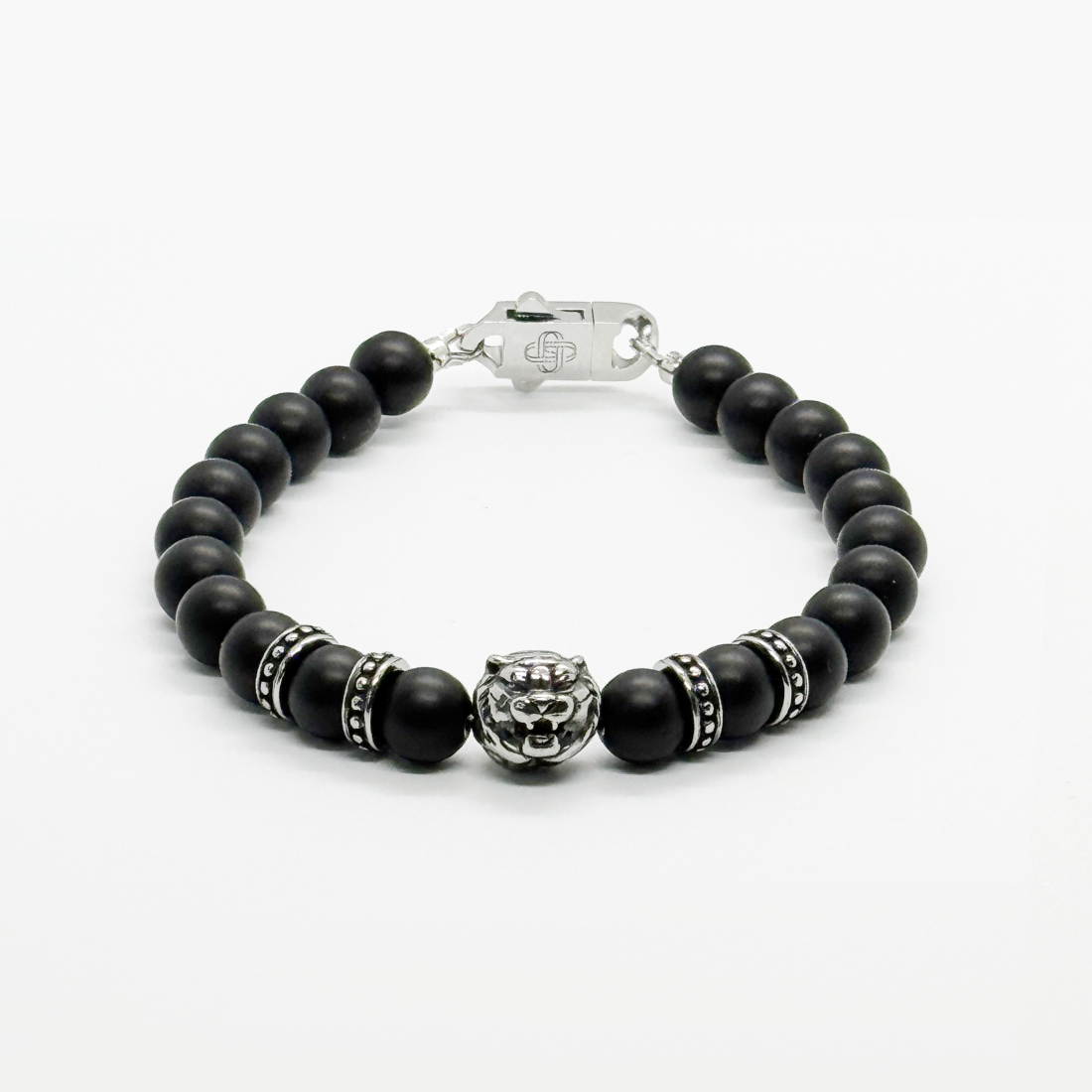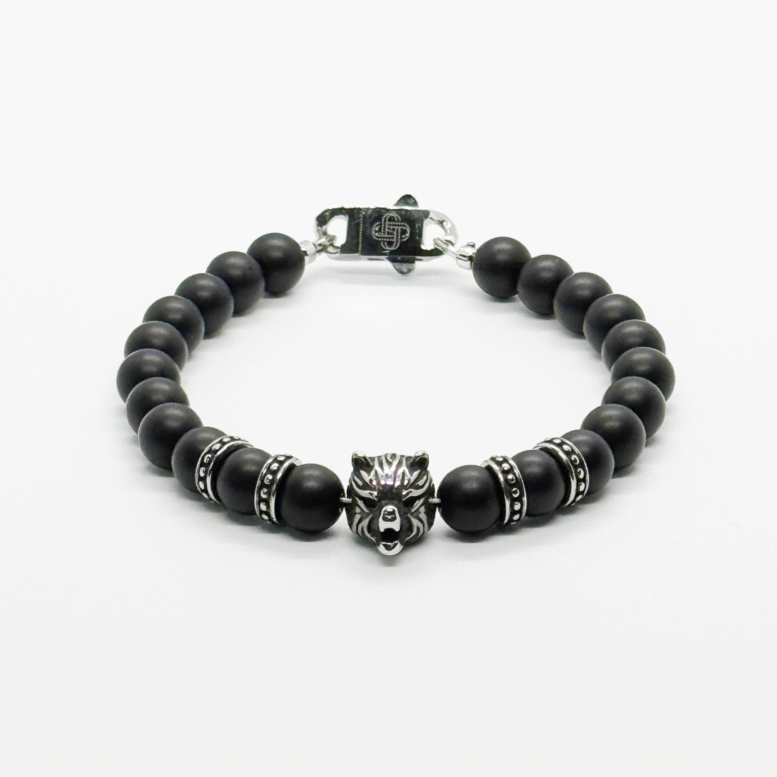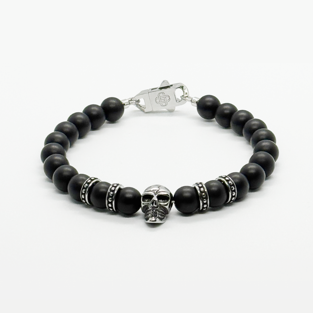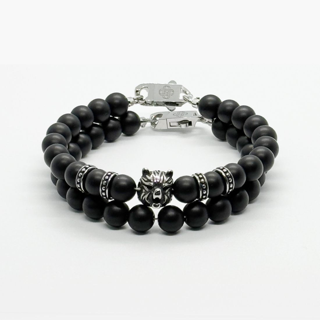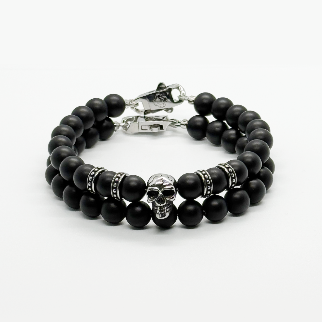 Двойной браслет из матового чёрного агата с металлическим акцентом. Основа — прочный стальной трос, сохраняющий форму и не подверженный растяжению. Фурнитура и замок выполнены из нержавеющей стали с гравировкой Overstone’s. В комплекте — фирменная коробка и мешочек из эко-кожи.